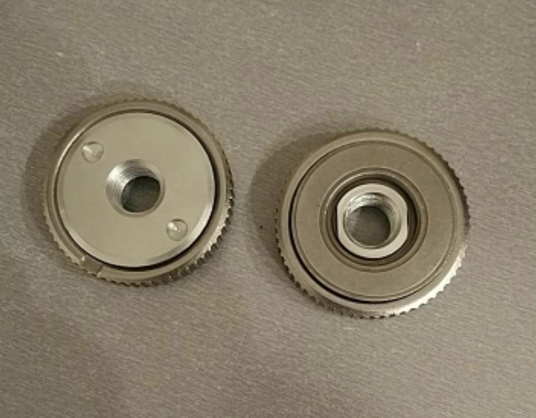 Эта насадка – самозатяжная гайка. Она зафиксирует любой диск, или иное устанавливаемое на машинку приспособление, без лишних усилий с вашей стороны. Она легко затягивается и откручивается рукой, без специального инструмента. Она самозатягивается во время работы шлифмашины. Гарантируя вашу безопасность во время работы турбиной.