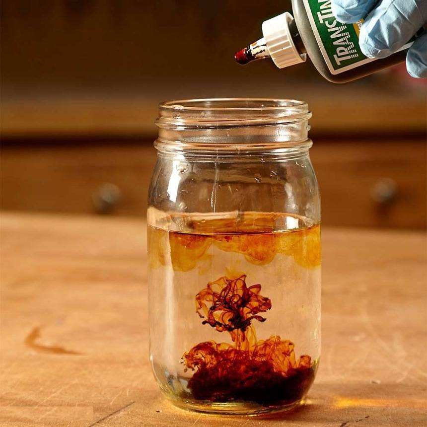 Лак на водной основе при высыхании даёт совершенно прозрачную поверхность и может придавать древесине холодный оттенок. Особенно это касается тёмных пород древесины, таких как орех. Если вы хотите сделать оттенок покрытия более тёплым, по аналогии с масляным лаком, добавьте несколько капель красителя. Смешайте краситель и воду, получив слабый раствор, а затем проморите этим составом древесину перед тем, как нанести лак.