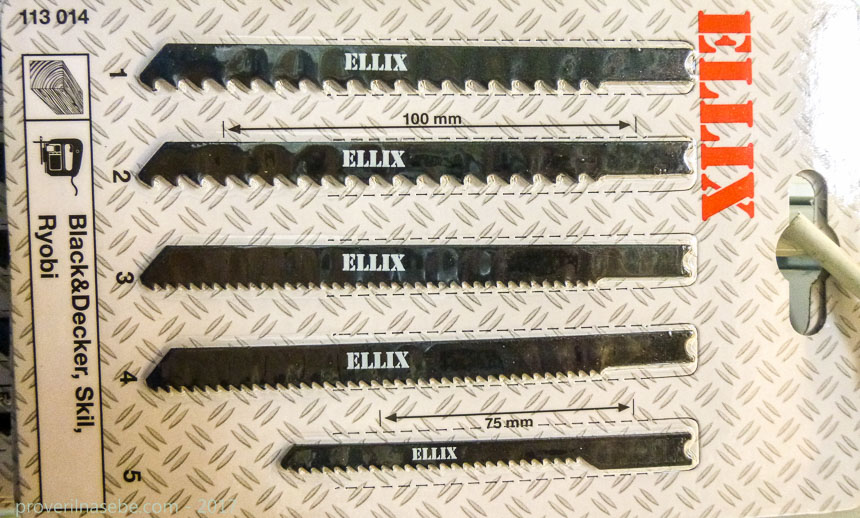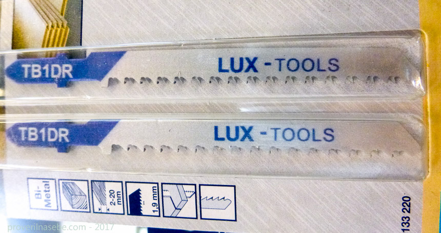 Еще потребуются пилки для электролобзика. В магазине ОБИ предлагались два варианта полотен. Одно было подходящее, а другое категорически не годилось. Взгляните на эти полотна: