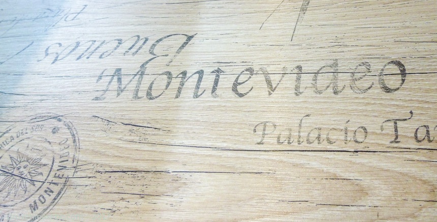 Напольное покрытие с надписями подходит для отделки интерьера в современном стиле. Так же как и другой рисунок, надписи могут быть на каждой доске или быть составляющими одной крупной надписи.
