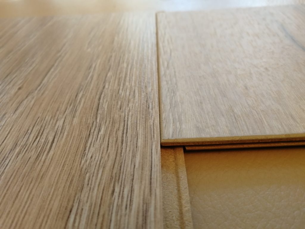 Финишный декор за эту цену стандартный, без изысков. Существуют незначительные проблемы с геометрией планок – могут быть зазоры при стыковке. При сборке покрытия в некоторых местах образуются микроступеньки. Фактическая толщина панели чуть отличается от задекларированной и равна 7,8-7,9 мм.