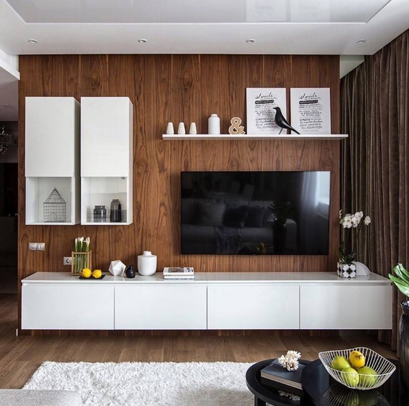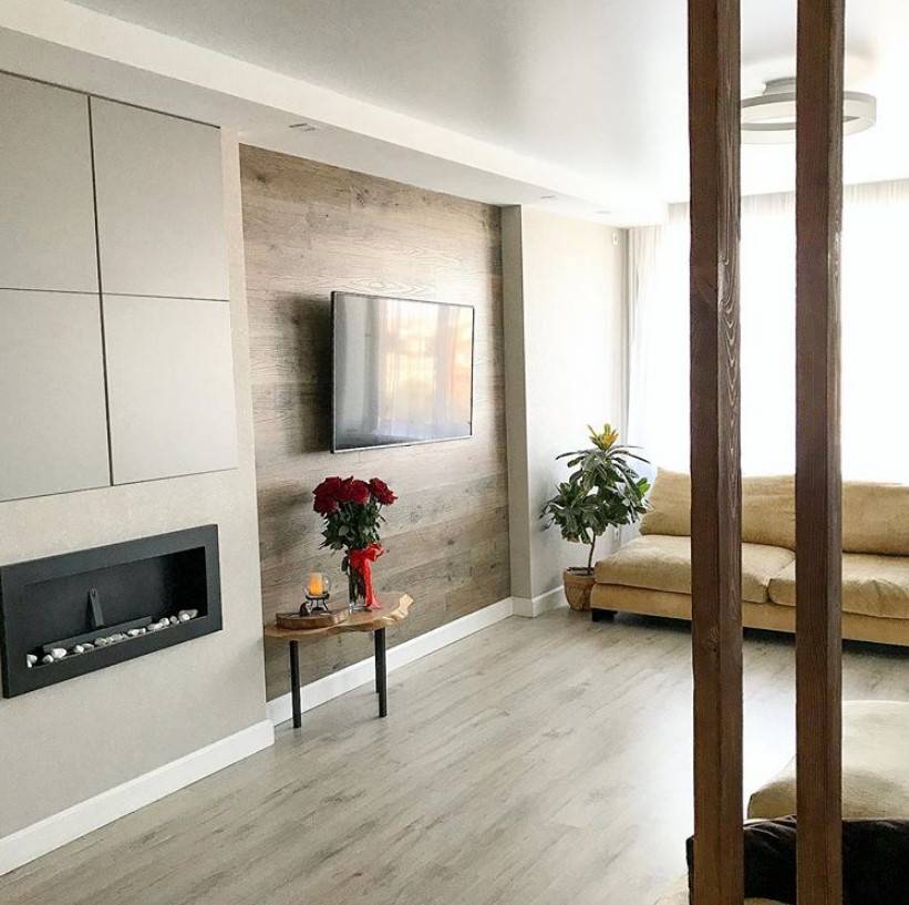 Стена из ламината в зале дополнительно облагораживает это и без того значимое помещение. Вы можете убедиться в этом наглядно ниже.