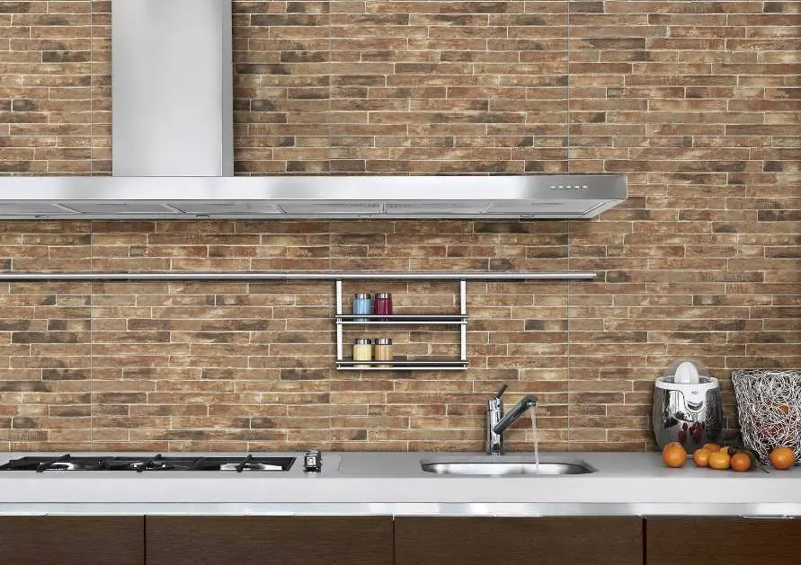 Можно облицевать все поверхности на кухне, отдельно взятую стену. Например, выделить фартучную зону в пространстве между кухонным гарнитуром.