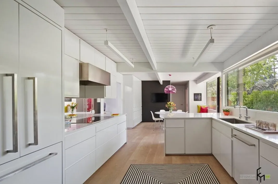 Белый фартук из ламината в интерьере кухни сочетается с любой мебелью. Такие панели можно использовать для отделки целых стен или отдельных зон. Помещение будет выглядеть светлее и свежее, пространство визуально расширится.