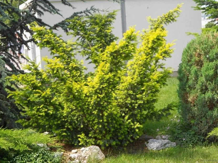 Тис также используется на садовых участках, несмотря на капризность. Ему требуется плодородный участок без ветров. При этом он прекрасно обходится без солнечного света. Самый распространенные сорта – Самерголд и тис ягодный, имеющий крону конической формы и красивую хвою светлого или черновато-зеленого цвета.