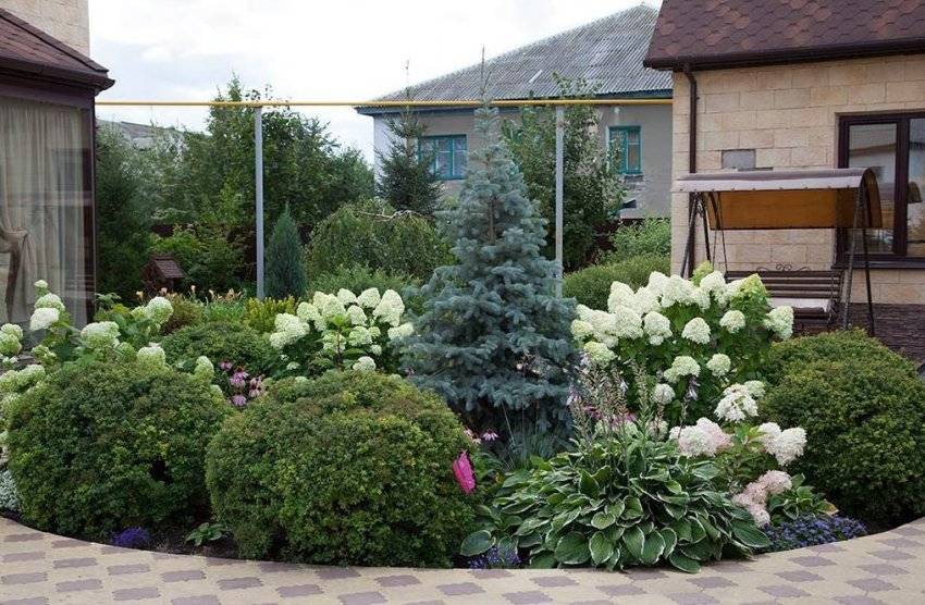 Стоит уделить особое внимание цветам и кустарникам. Их на маленькой площади не должно быть много, при этом лучше выбирать те, которые радуют нас цветами круглый год