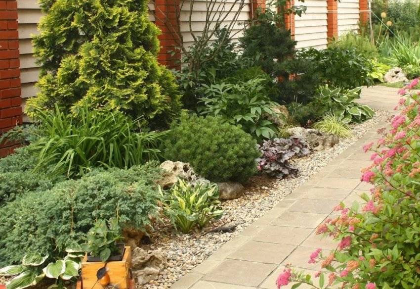 - Необходимо определиться, будут ли хвойники выступать в качестве самостоятельной композиции или являться фоном для цветущих растений.