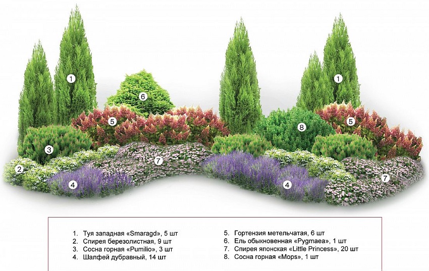 Сюда можно объединить растения разных форм, размеров, времени цветения. Пик расцвета у рядом посаженных растений будет разный. Для правильной посадки проще всего разделить растения на быстрорастущие и медленнорастущие.
