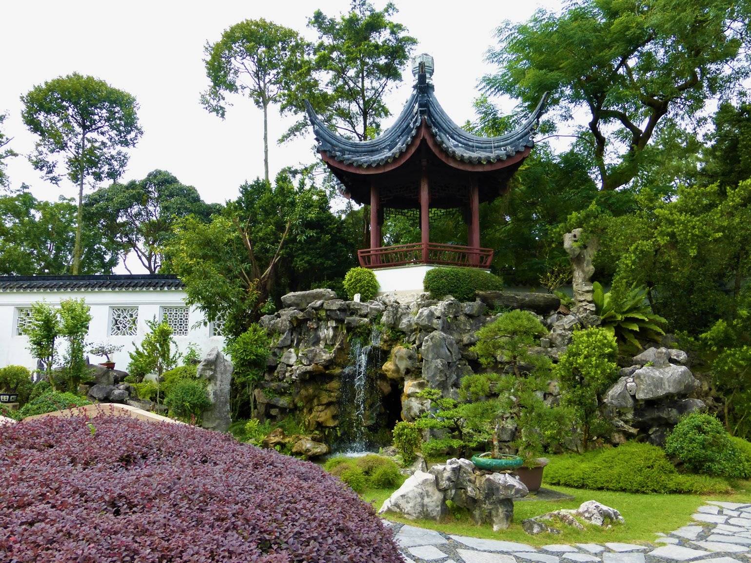 Ключевые элементы. Ландшафт должен органично сочетать природные локации и архитектурные строения. В последних могут присутствовать классические элементы китайской архитектуры ― покатые крыши, фигурки драконов в декоре. В таких проектах много объектов из камня ― дорожки, извилистые галечные тропинки, обрамлённые камнями водоёмы, мостики.