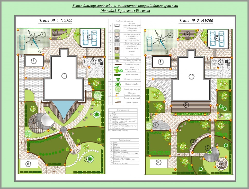 Перед тем как создать план дизайна ландшафта территории дачи, размером в 15, 10, 12 или 20 квадратных метров, следует тщательно продумать месторасположение основных атрибутов, и уже потом закрепить это все на бумаге, сделав точный план своего участка – примеры таких планов предоставлены в интернете.