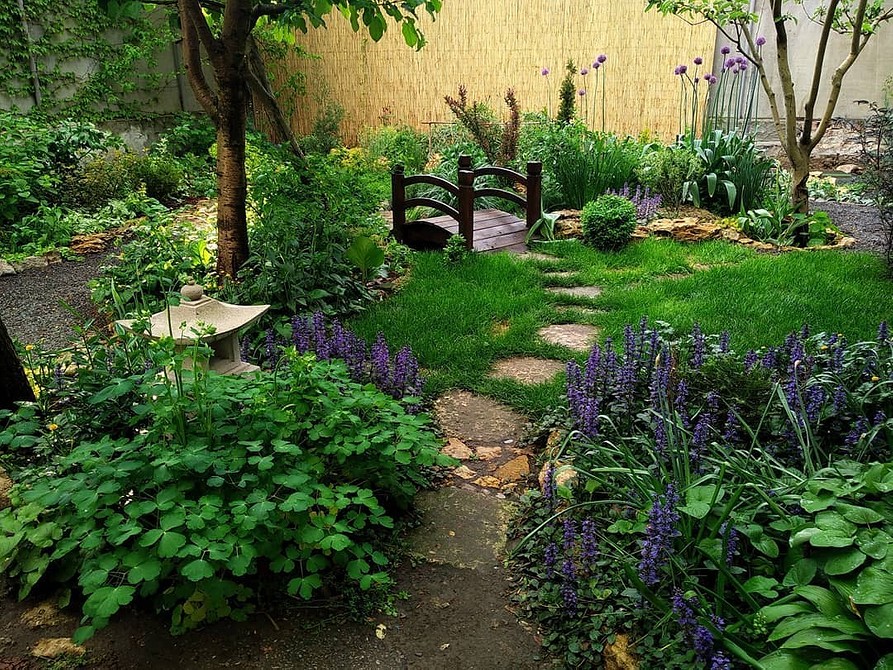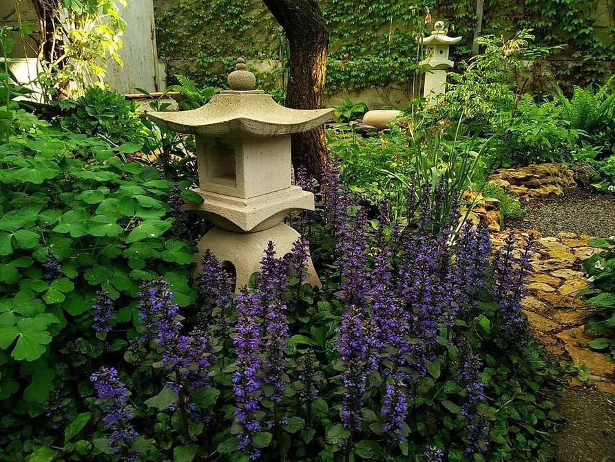 Создать подобный сад можно и на даче в средней полосе, многие растения для этого подойдут, но задача не совсем простая для начинающего садовода. Необходимо распределить деревья, кустарники, цветы и травы продуманными группами так, чтобы создать ощущение аккуратного и ухоженного леса. Для тропинок укладывают каменные плиты неровной формы, а в зарослях кустарников устанавливают традиционный японский декор.