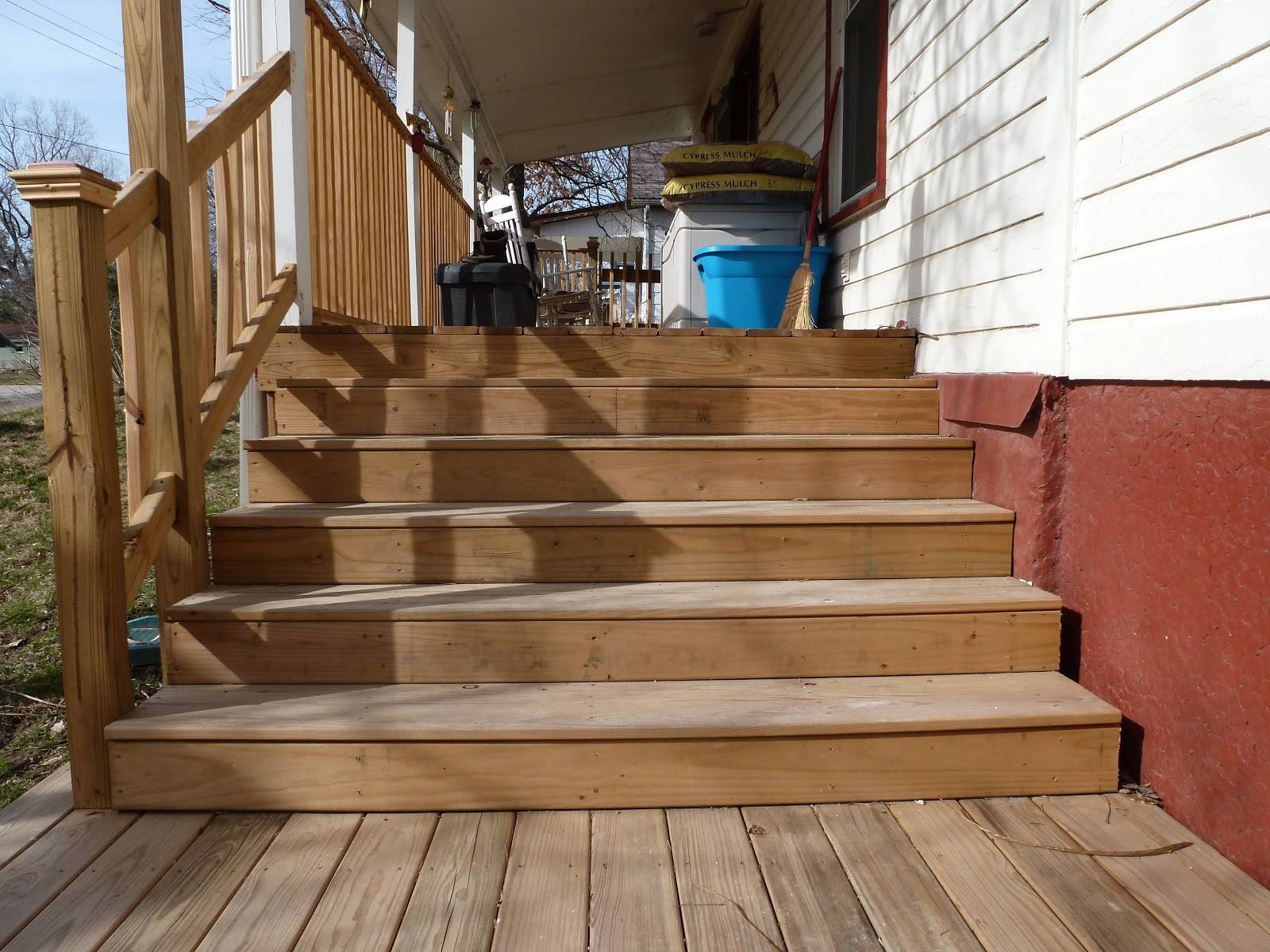 После того как ступени готовы, к ним можно прикрутить балясины перил. Для того чтобы защитить дерево от влияния разрушающих факторов (сырости, плесени вредных насекомых), на него необходимо нанести лакокрасочное покрытие.