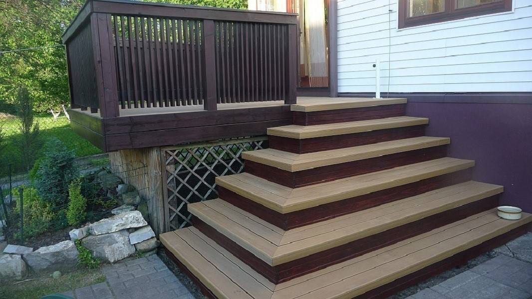 Помимо лиственницы и дуба, для обустройства лестницы на террасу подходят экзотические породы в виде секвойи, тика или мербау. Стоимость последних несравненно выше, нежели привычных для наших широт деревьев. Независимо от происхождения, используют древесину с низким процентом влажности, иначе в процессе высыхания конструкция для террасы деформируется.
