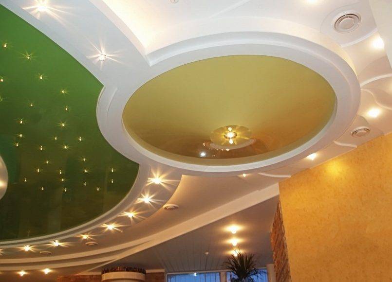 С натяжными потолками желательно использовать последние два вида. Галогенные и лампы накаливания сильно нагреваются и способны повредить полотно. Можно устанавливать только маломощные (не больше 40 Вт для плёночных потолков и 60 для тканевых).