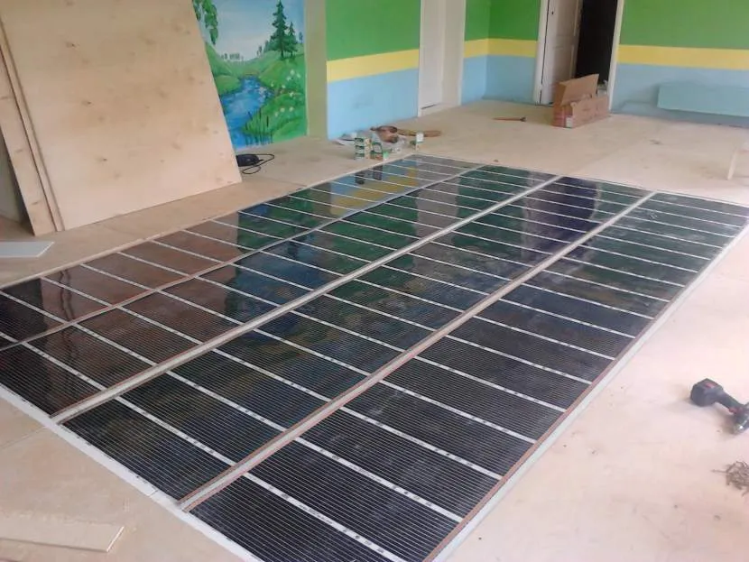 Такой вариант является разновидностью электрической системы. Пленка подключается к источнику питания. Ее нужно стелить на черновое основание.