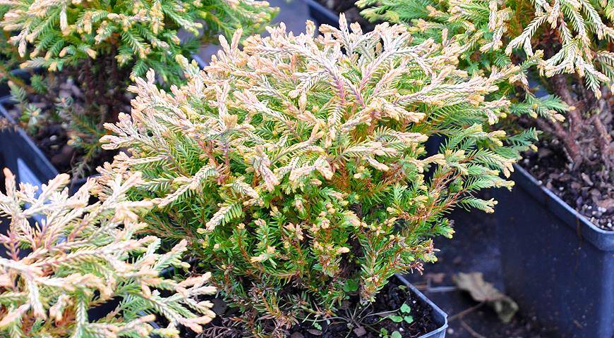 ‘Teddy’ – довольно новый сорт с необычной игольчатой хвоей. Крона шаровидная, высотой до 0,4 м. Требует плодородной и влажной почвы.