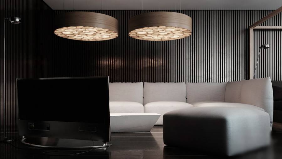 Подойдут и любые другие минималистические современные люстры в гостиную, но сам свет должен быть холодным и ярким.