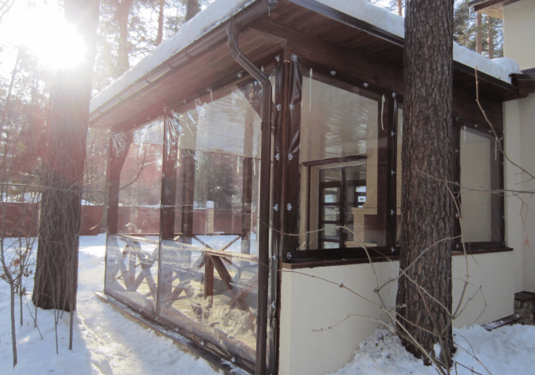 Терраса – площадка, зачастую выполнена из дерева, слегка приподнятая над землей, визуально увеличивающая пространство дома и как правило примыкающая непосредственно к нему. Если Вы хотите увеличить срок службы самой конструкции и сделать ее более уютной в плохую погоду, необходимо надлежащим образом подумать о защите ее от ветра, дождя и снега. Поэтому многие владельцы загородных участков задумываются над тем, чем закрыть террасу при приближении зимних холодов и не превратить ее в дополнительную комнату. «Наша команда» предлагает Вам выбрать такой вид остекления как мягкие окна. В этом случае терраса из открытой превратиться в универсальную, не утратит эстетический внешний вид, и в добавок укрытие такими окнами поможет сохранить стройматериалы от неблагоприятных погодных условий.Мягкие окна для террасы – это очень, довольно-таки, плотный, эластичный, надежный материал, который прекрасно заменит обычное остекление и к тому же, стоимость на порядок дешевле. Они полностью прозрачны, легко устанавливаются и снимаются, отличаются прочностью.