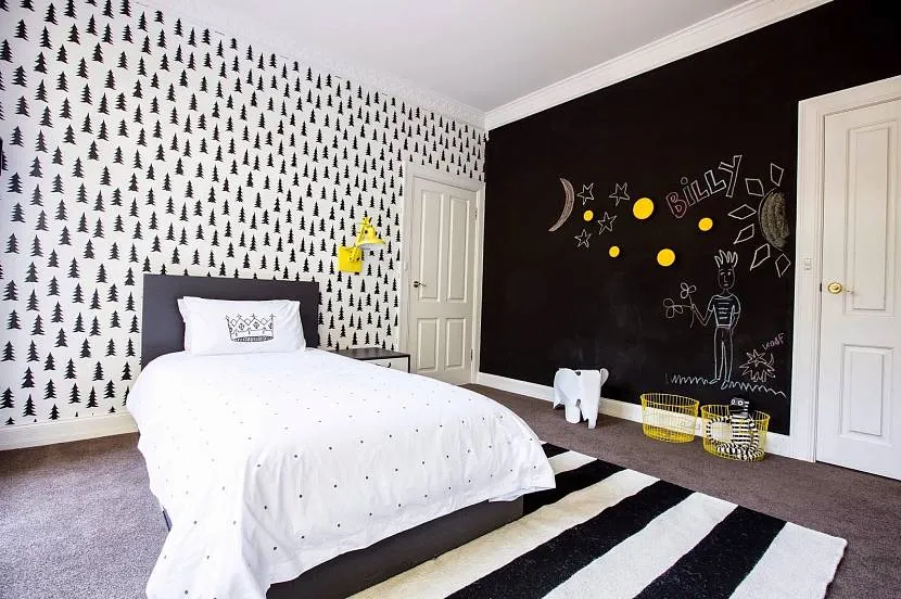 Грифельная стена в минималистичной детскойИсточник sense-life.com