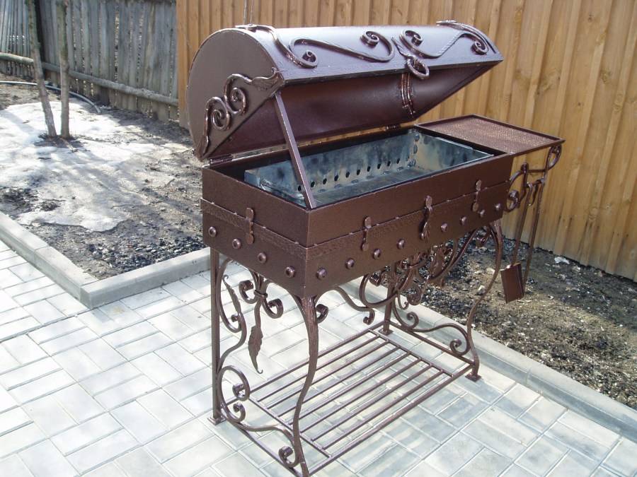 - Цельнометаллические. Состоят из минимального количества опций, необходимых для приготовления шашлыка или барбекю. Могут украшаться элементами художественной ковки.