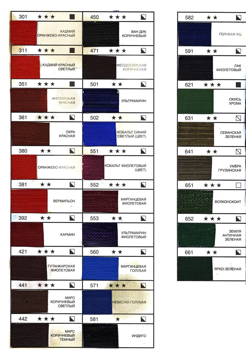Линейки масляных красок