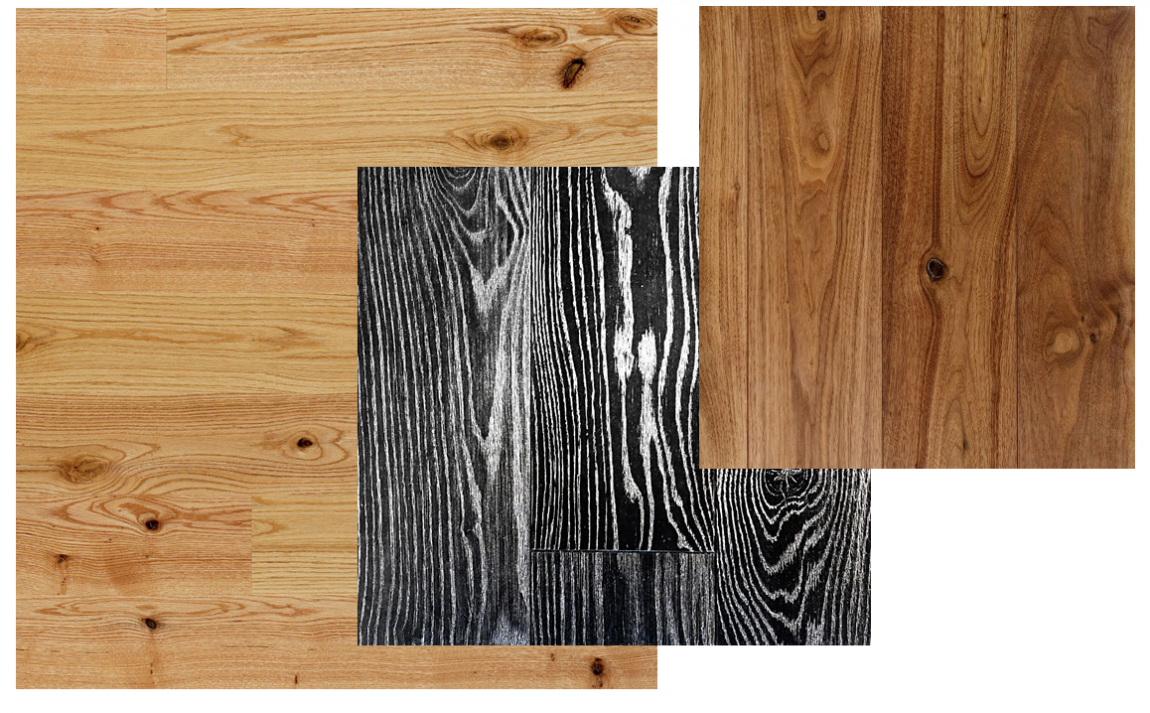 Естественный цвет дубовой доски – светло-коричневый. Но его патинируют, брашируют, тонируют, выбеливают волокна. В результате цветовая гамма : от почти белого до угольно – черного.