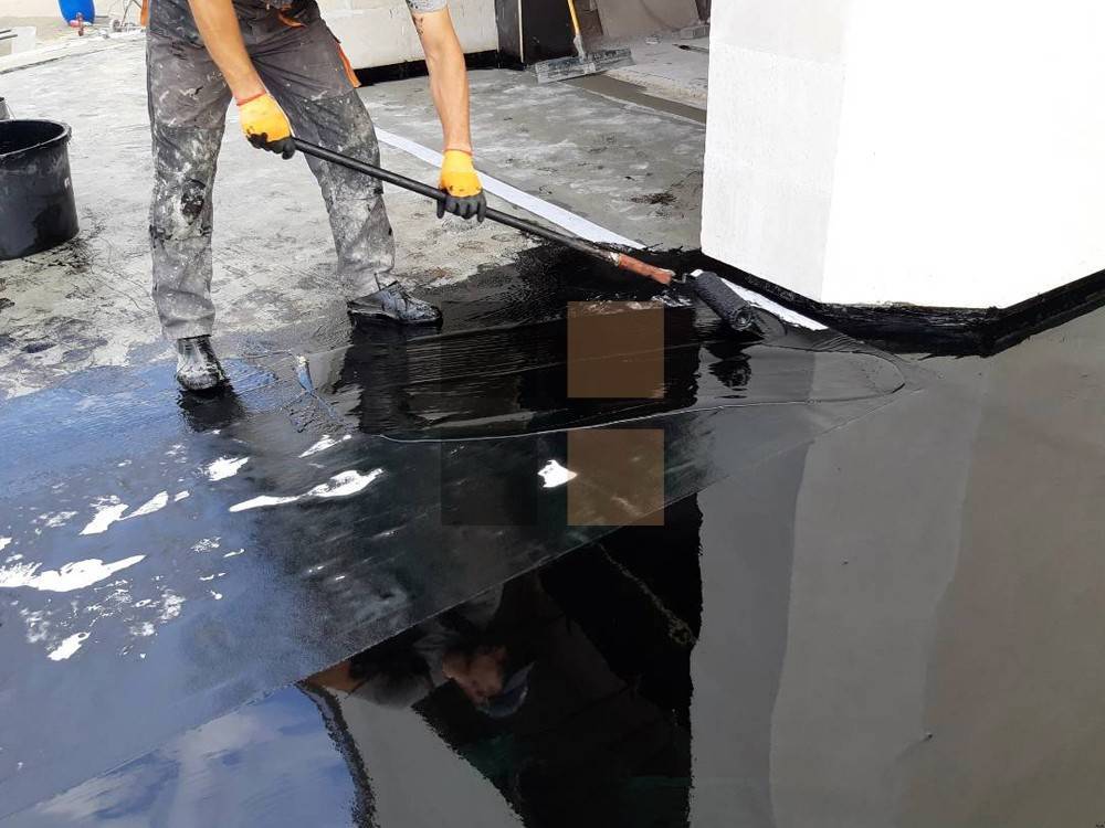 Мастика гидроизоляционная наносится при помощи кисти, валика, швабры, методом распыления при отсутствии осадков и температуре выше -5 градусов.