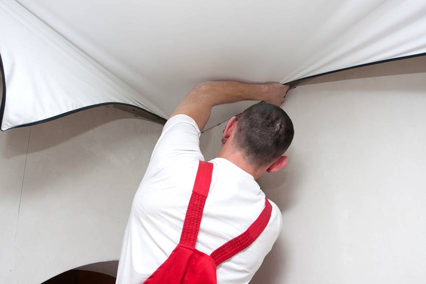 Установка такого полотна происходит несколькими способами, которые объединяет необходимость нагревать воздух в той комнате, где происходит монтаж. Края полотна закрепляются в специальном крепежном элементе – багете, который прикрепляется к стене или перекрытию посредством дюбелей, а после этого, покрытие нужно нагреть, чтобы придать эластичность и его можно было полностью растянуть для фиксации.