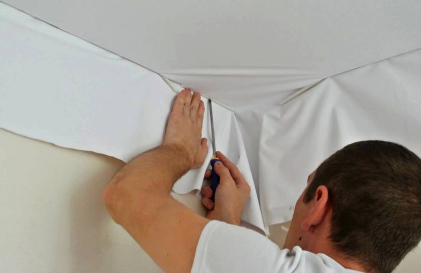 Монтаж натяжного полотна считается одним из самых доступных способов придания эстетичности потолочной поверхности помещения. При желании он может быть выполнен своими руками. Необходимо лишь иметь знания о последовательности и особенностях процесса, а также владеть определенным набором инструментов.