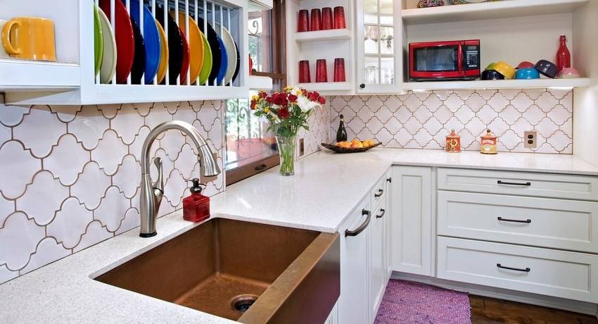 - если для оформления фартука используется плитка, то лучше выбирать гладкий глазурованный вариант, так как за ним легче ухаживать;
