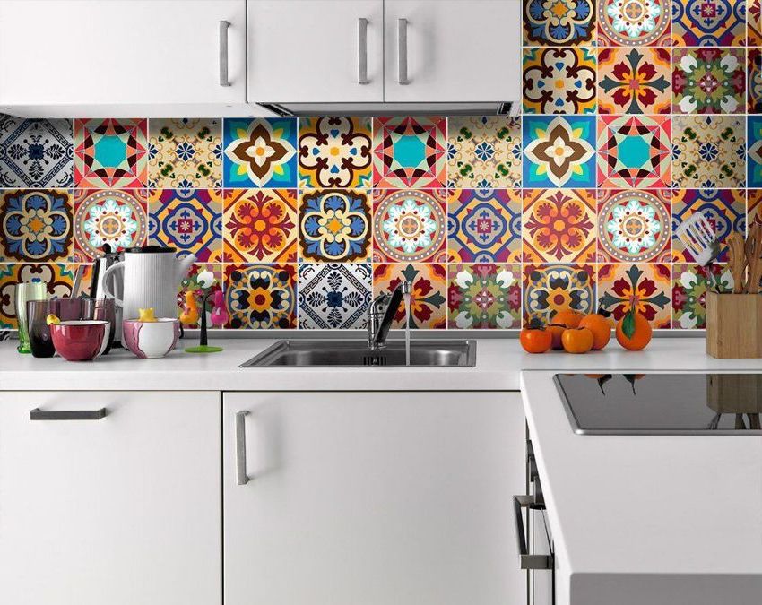 - универсальным цветом для оформления фартука считается белый цвет, который будет прекрасно гармонировать с любой отделкой и мебелью. При желании его можно разбавить яркими акцентами;