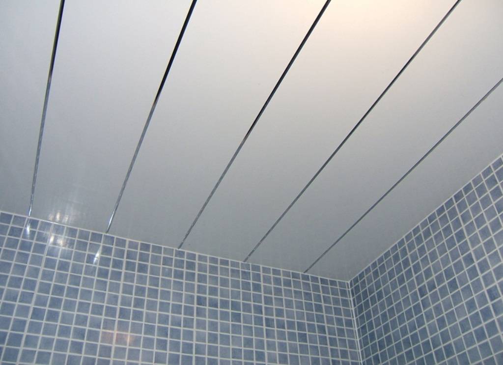 Если для облицовки стен используются ПВХ панели, тогда и потолок рекомендуется отделывать этим же материалом.
