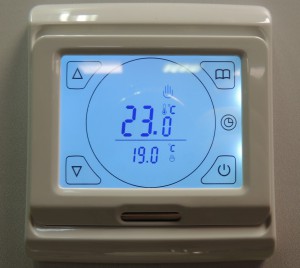 Следующий в классификации – цифровой терморегулятор, суть работы которого такая же, как у механического, только управляется он сенсором либо кнопками. Сенсорные приборы обычно комплектуют двумя датчиками, замеряющими температуру у пола и в помещении.