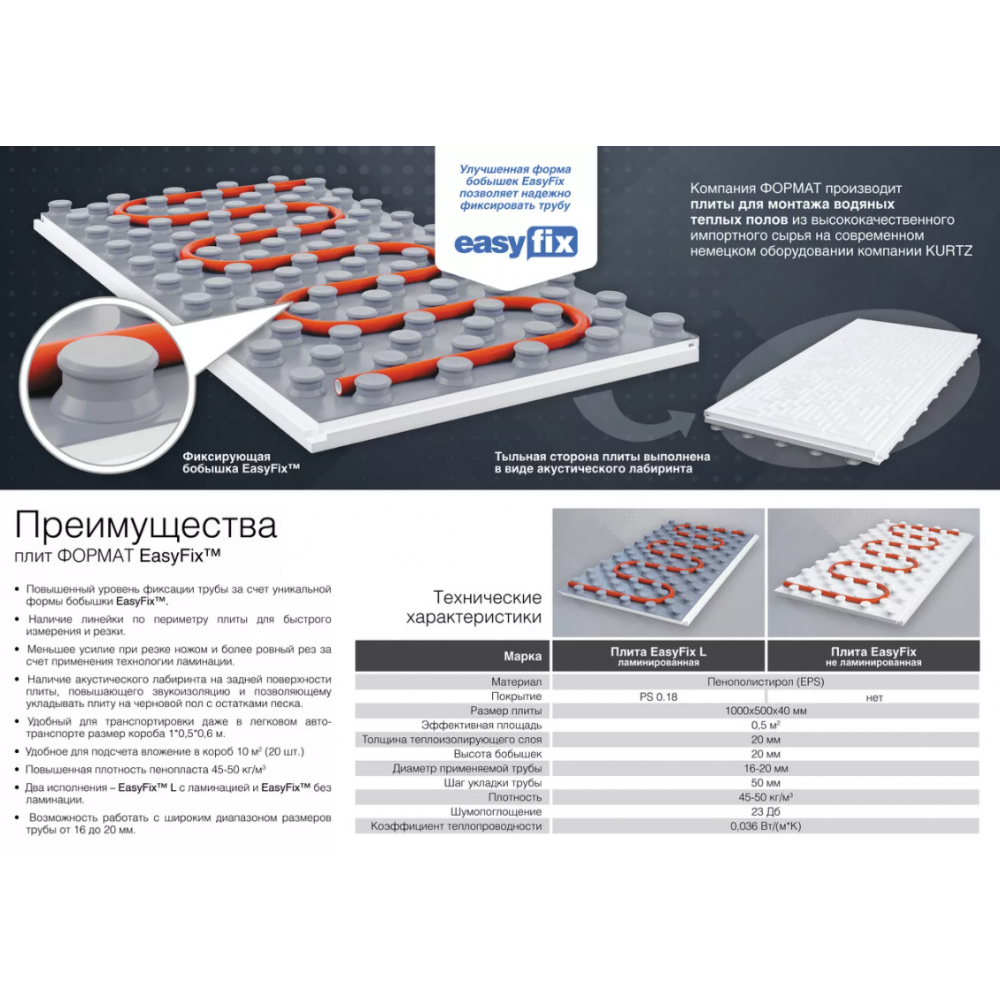 Трубы надежно фиксируются и не смещаются при заливке финишной стяжкой. Выпускаются с ламинатом и без, первые – имеют сверху слой пароизоляционного пленочного покрытия.