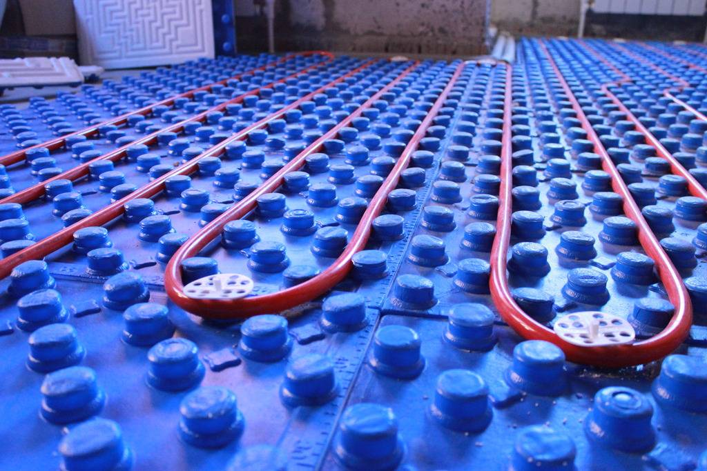 Завершив покрытие поверхности пола, нужно будет провести разметку (если требуется) и приступить к монтажу трубопровода.