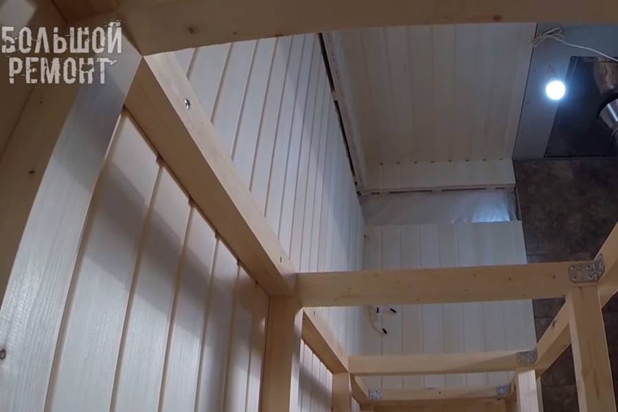 Так как высокой температуры в этом помещении не бывает, дерево можно защитить. Рейки и брус перед изготовлением пропитывают антисептиками, морилками, после изготовления обрабатывают воском, маслом, лаком. Допускается даже красить водостойкими красками.