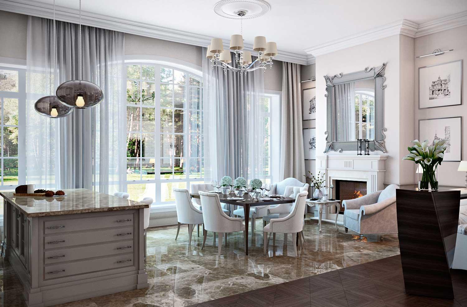 Гостиная-столовая в классическом стиле