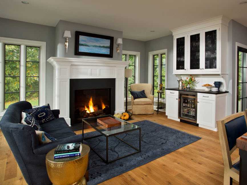 Отличие этого стиля в отсутствии пышности и помпезности. Естественная простота наряду с удобством и уютом гостиной, должна включать в себя привкус новизны. Интерьер компактный, но не загроможденный.
