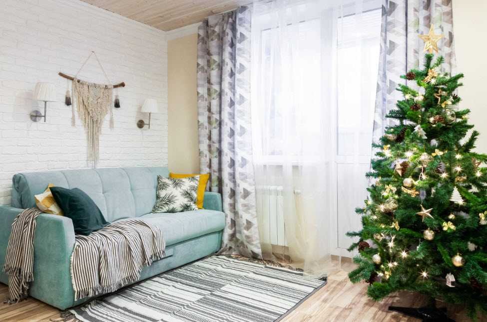 «Голые» окна — решение в духе скандинавского минимализма. Полностью отказываться от штор можно в случае, если окна выходят на северную сторону и гостиная страдает от недостатка солнечного света. Но и в таких условиях решение может быть неудобным. Ощущение «у всех на виду» — это лишний эмоциональный дискомфорт.