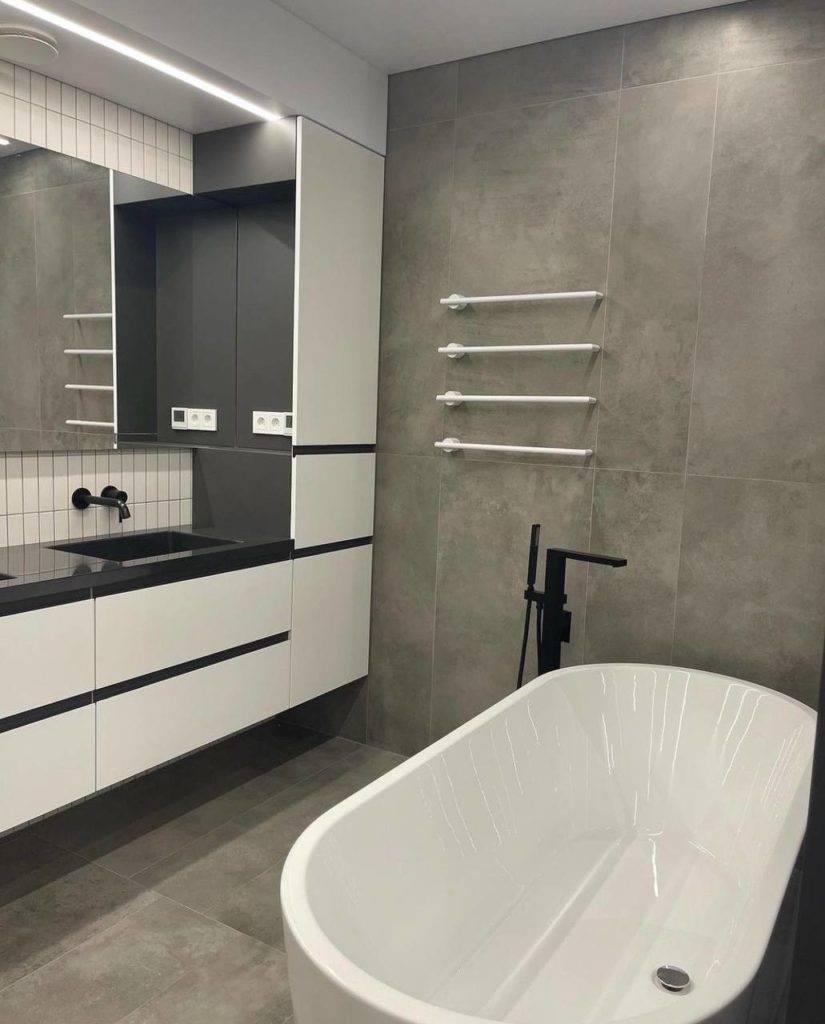 Кстати, отдельностоящая ванна — единственный момент, где моде следовать не стоит. Это чудовищно непрактичное решение, которое выглядит красиво только на картинке. Многие мечтают картинками. Не стоит. Ванну за борт, а в остальном современные идеи ремонта очень хороши.