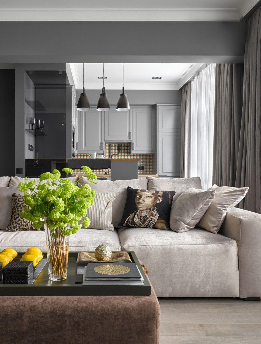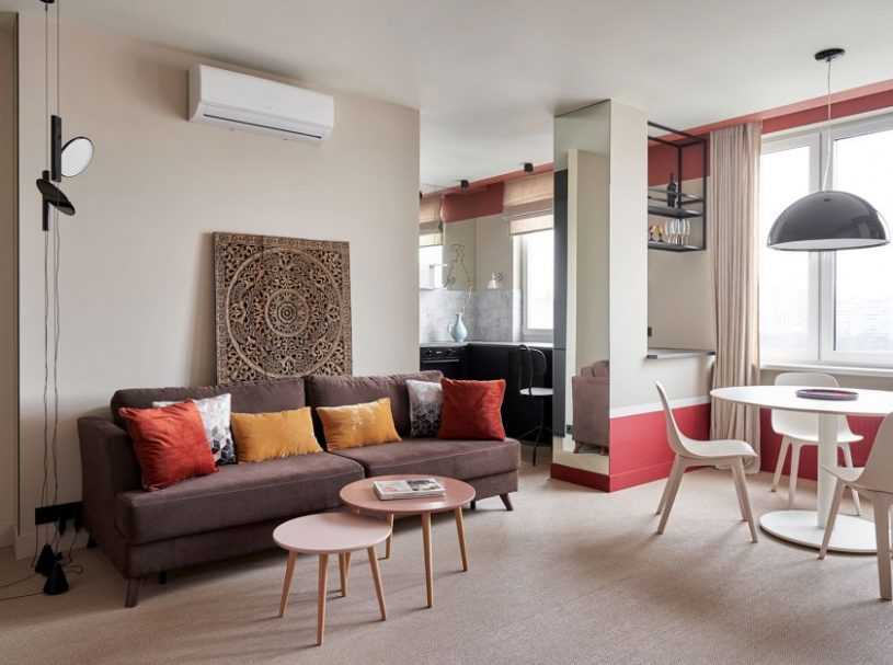 Кроме того, в небольших квартирах гостиная — многофункциональное и часто поделенное на отдельные зоны, помещение. Это легко сделать с помощью современной мебели даже на небольших площадях.