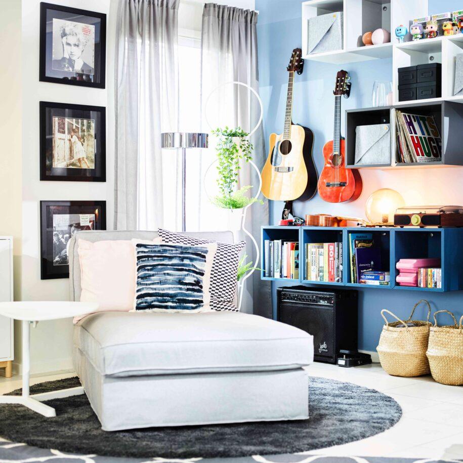 Дизайн интерьера гостиной с икеа начните с выбора системы хранения. Ее вид зависит от количества свободного места и вещей, которые нужно хранить.