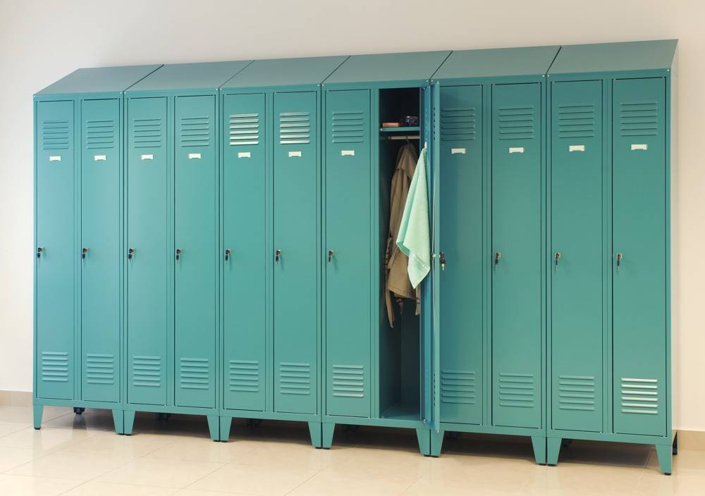 - Гардеробные металлические шкафы для одежды, личных вещей. Их размещают в школах, детсадах, спортзалах, фитнес–центрах, предприятиях, офисах и других помещениях, рассчитанных на большое количество людей.
