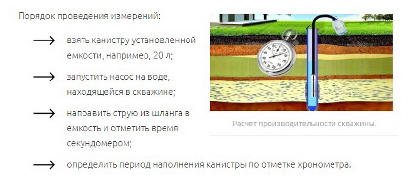 Определение дебита скважины производится примерно через сутки после ее бурения: уровень воды должен достигнуть максимальной отметки. Для расчета измеряется несколько параметров: