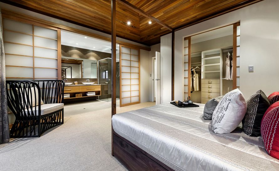 Интерьер спальни оформлен в стиле модерн. Межкомнатные двери органично вписываются в общую концепцию стиля.