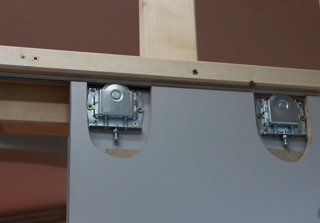 Укрепив места для направляющих, можно приступать к самой установке перегородки. Для этого согласно замерам необходимо приобрести выбранный тип направляющих в комплекте со всеми деталями её крепления. В комплект могут входить ролики для перегородки, а может быть, их придётся покупать отдельно. При этом желательно выбирать ролики из стали или из специальных твёрдых пластмасс. Если решено изготовить навесную перегородку, то тогда механизм будет виден или потребуется специальный декоративный элемент.