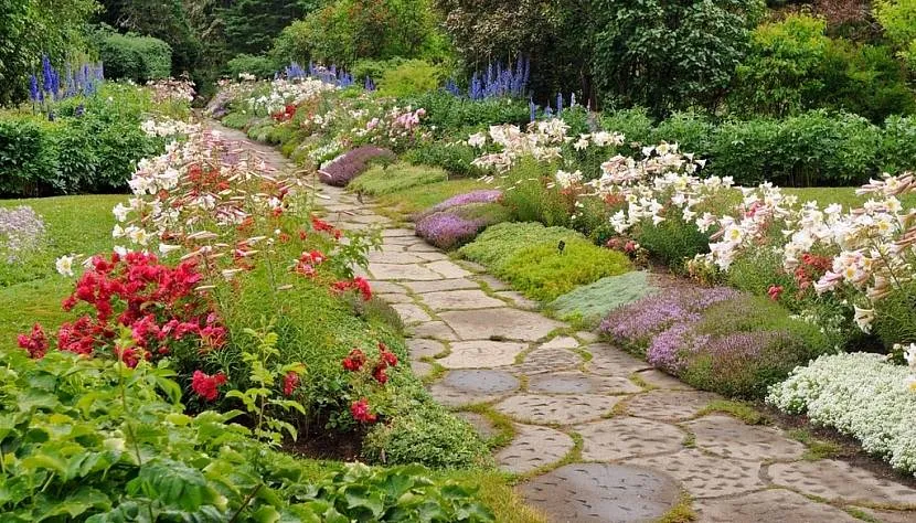 Цветник вдоль садовых дорожек нужно расположить, отступив от края дорожки около полуметра