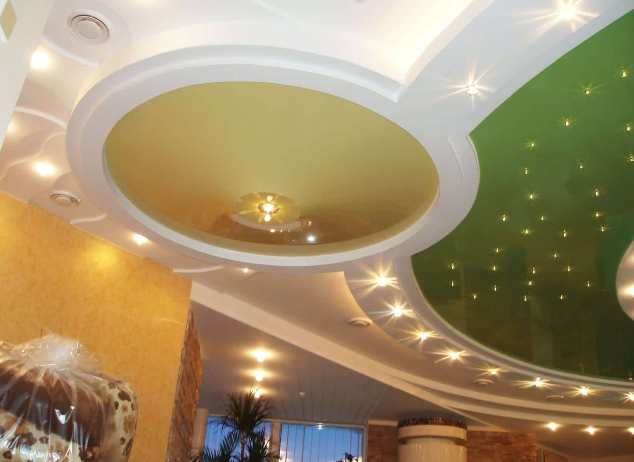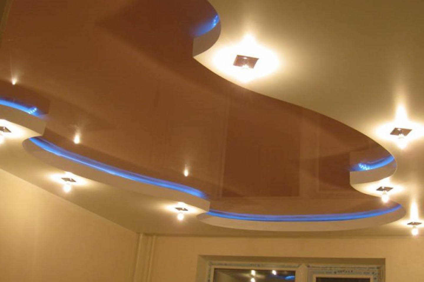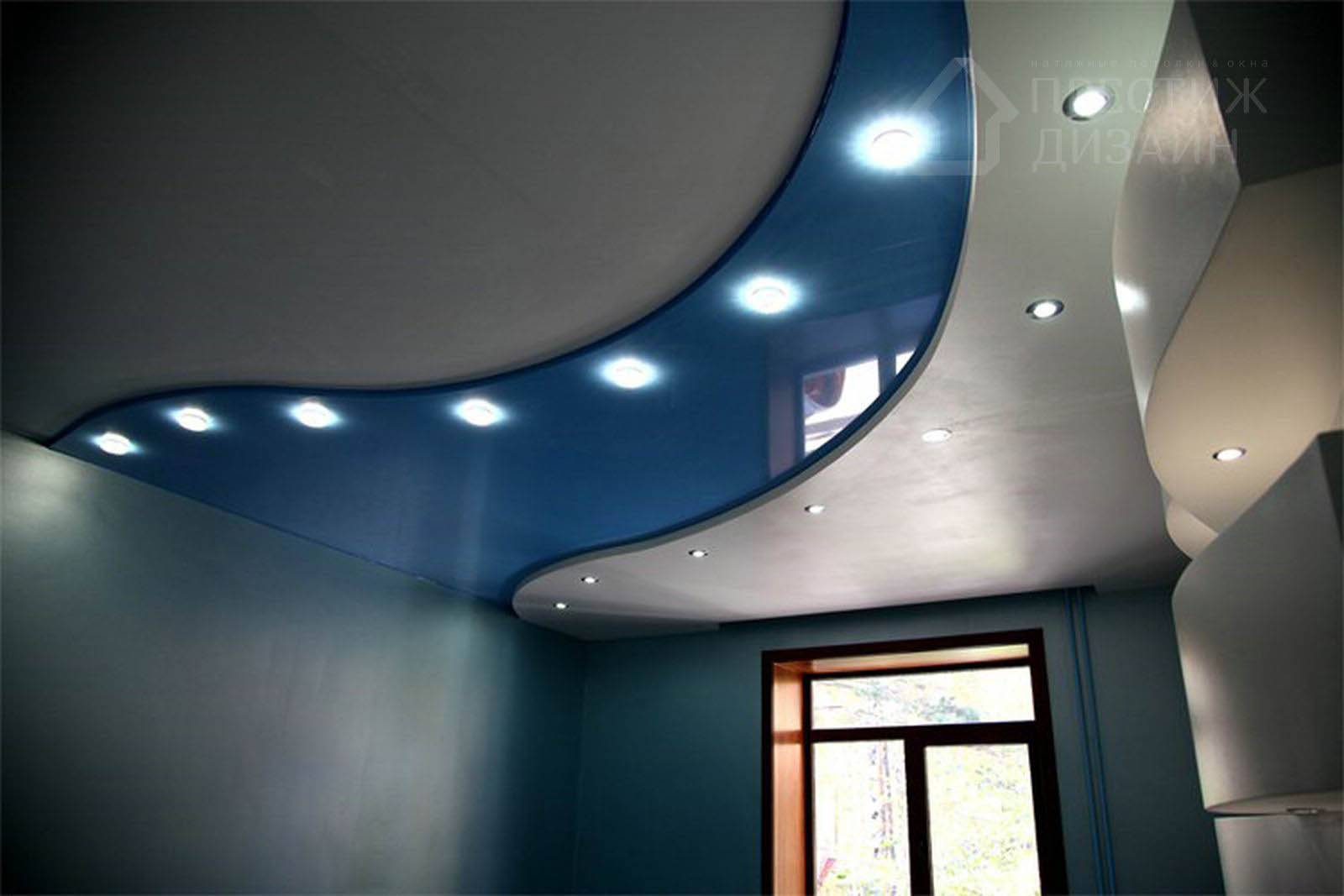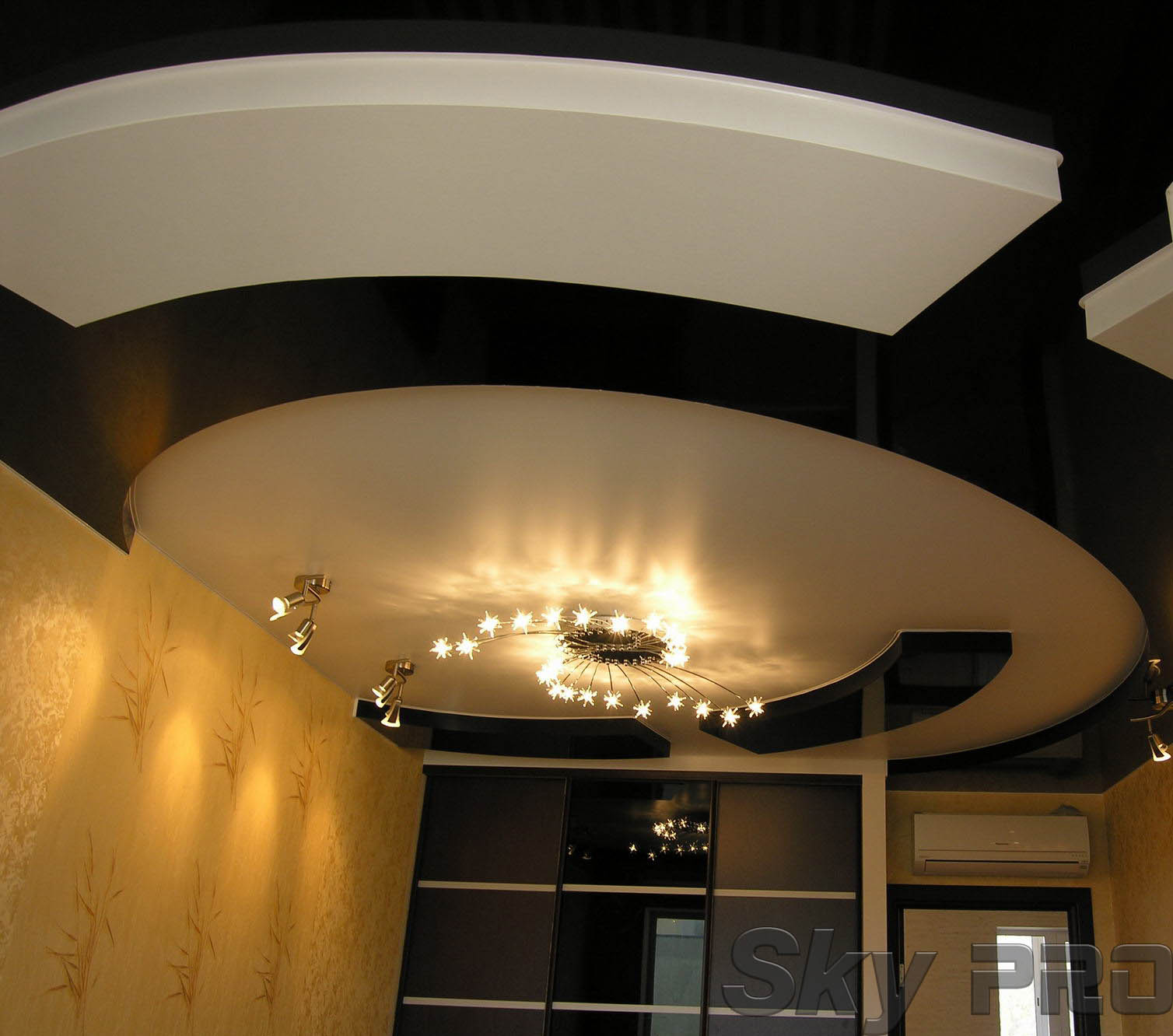Единственное, что ограничивает форму и количество уровней данных потолочных конструкций — высота и размеры потолка. Нижний уровень, обычно второй или третий, выполняется с небольшой площадью и со встроенным освещением, преуменьшающим визуальную массивность потолка.