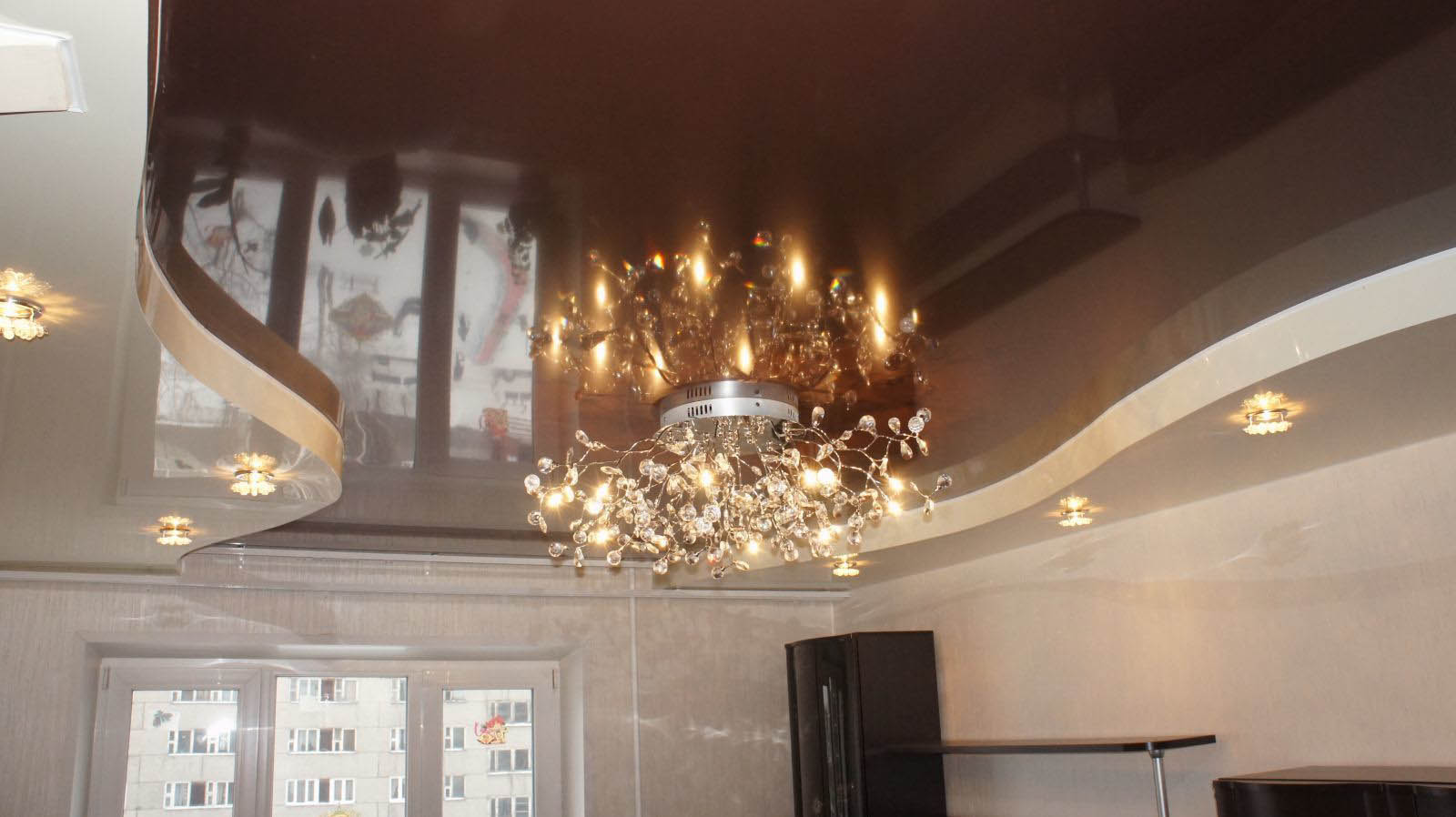 Вы также можете установить глянцевый потолок, который отражает в себе комнату, тем самым визуально расширяя её. Чаще всего многоуровневые натяжные потолки используют для украшения помещения. Они могут иметь различные формы, цветовые решения, световые оформления, за счёт чего дизайн интерьера получается оригинальным и необычным.