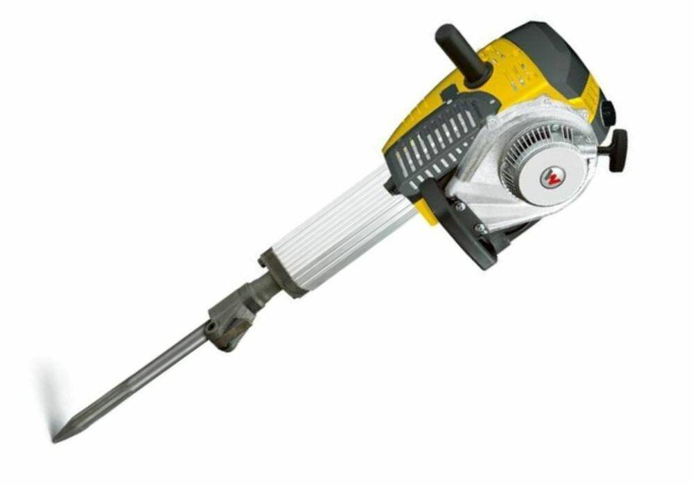 Отбойник оборудован двухтактным ДВС с объёмом мотора 80 см2. Молоток весит около 25 кг и подходит для дробления твёрдых материалов.